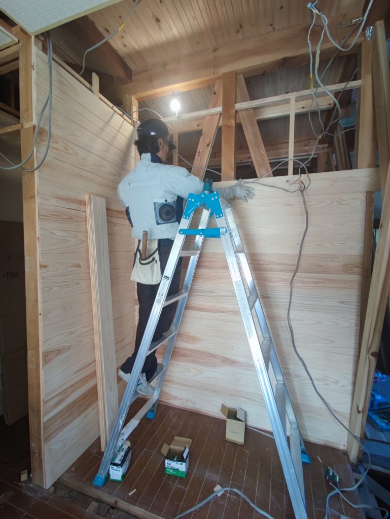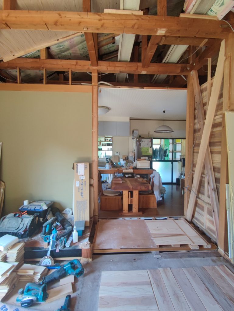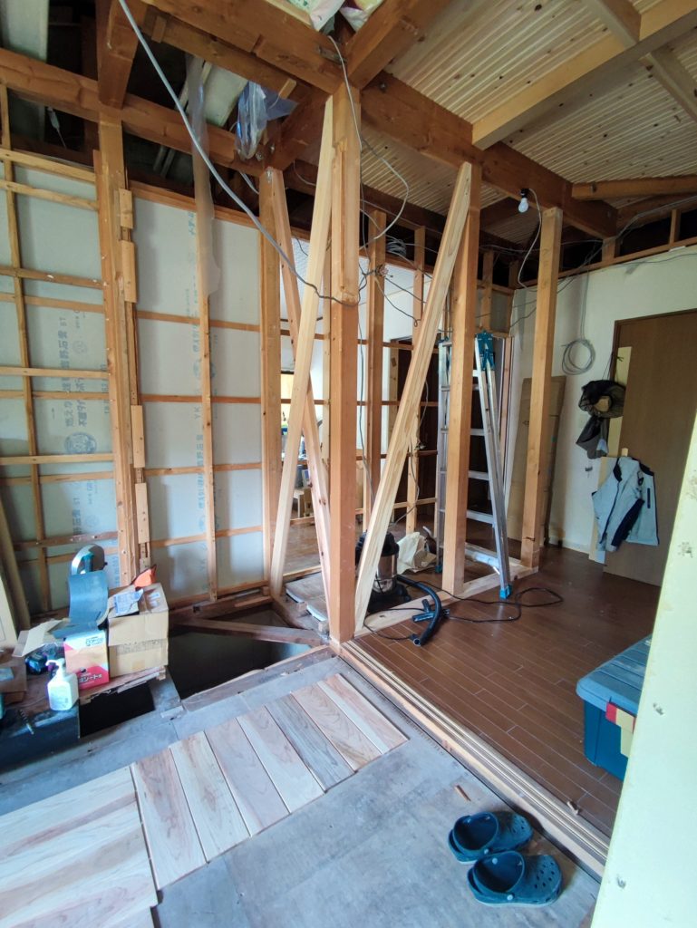 パントリーが終わってもまだまだ作業は続く😅 和室の壁が壊されて開放感😆