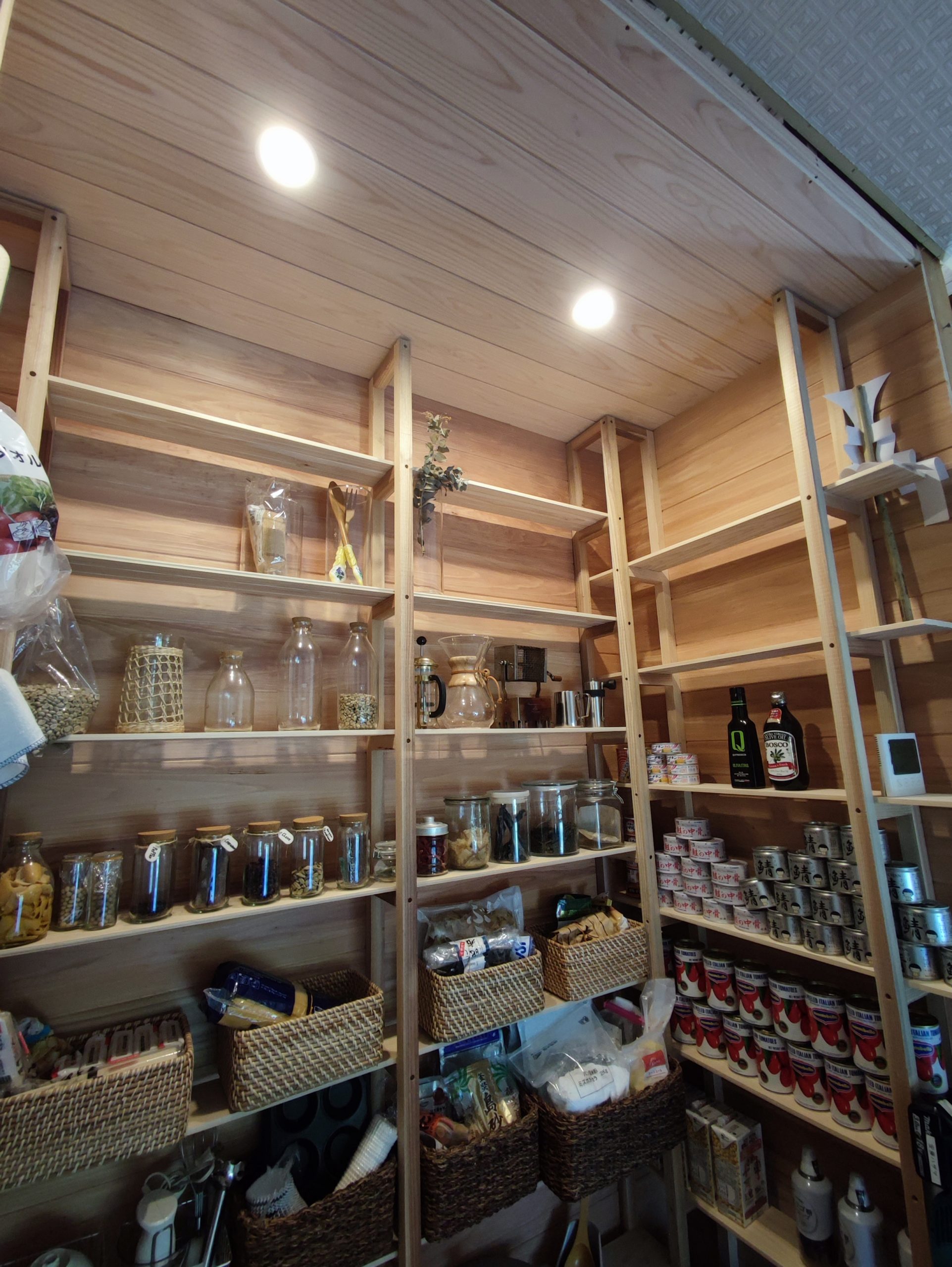 色々、試行錯誤しながらで大変だったようで、ただ出来てみるととても素敵な✨パントリーに仕上がって本人も満足😊
